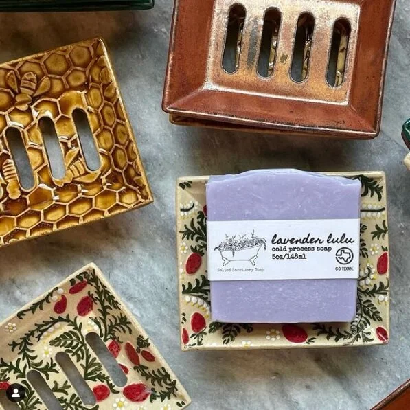Exclusive soap dish designs are sold via her website and at local shows. Be sure to check her website to see when her next show will be and when new colors are stocked.
